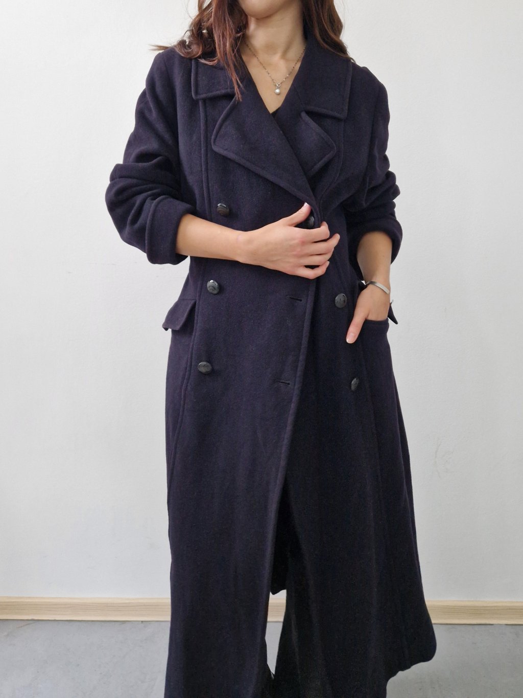 Čierno-modrý kabát s vlnou a kašmírom. Veľmi kvalitne ušitý. Nadčasový kúsok vo výbornom vintage stave.