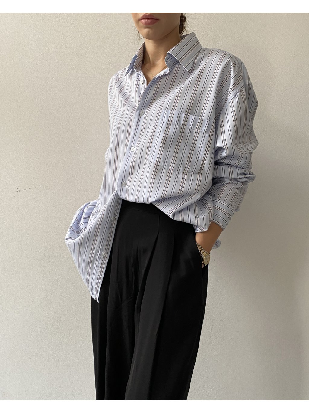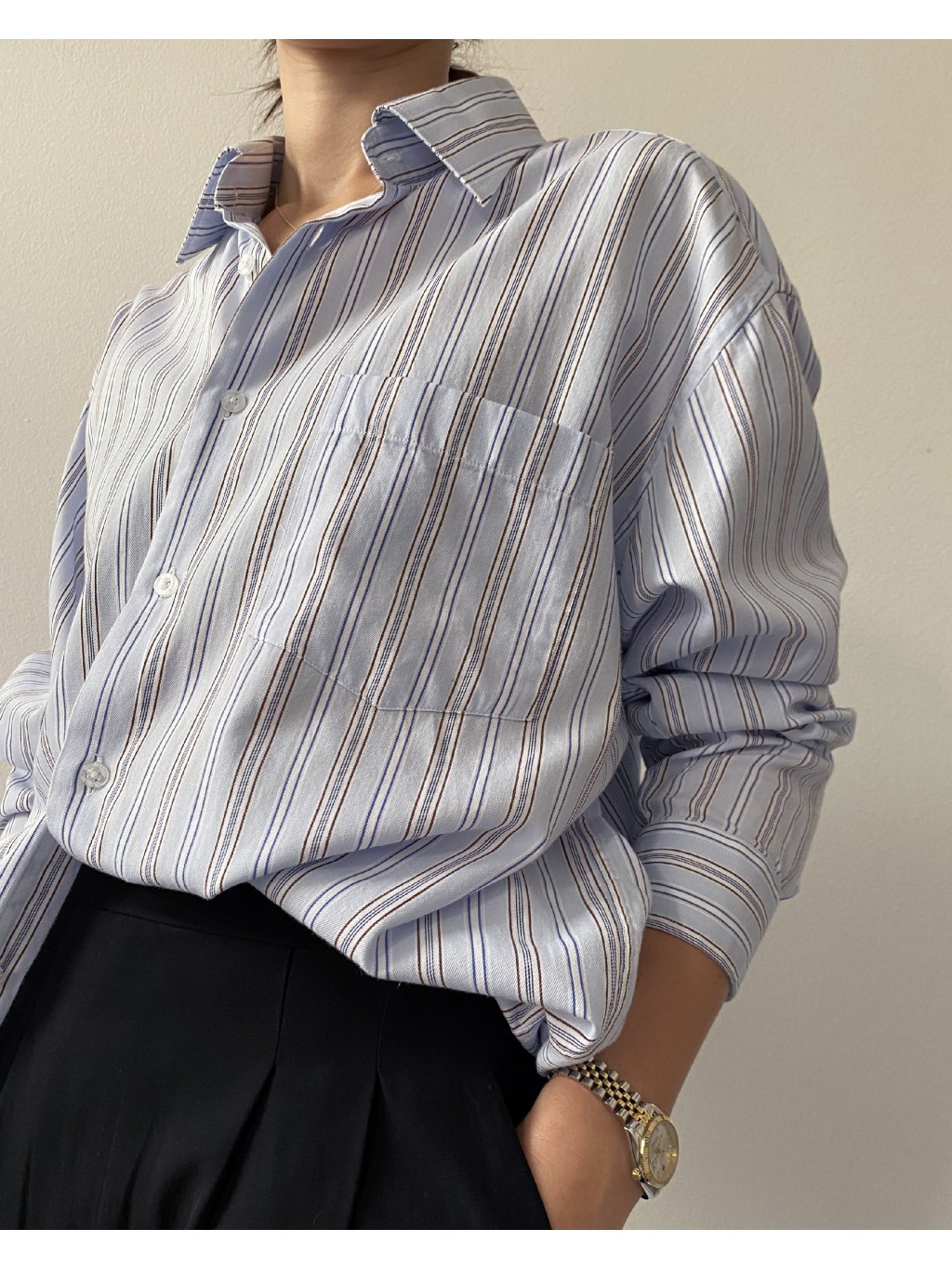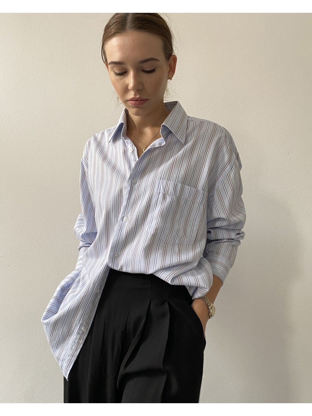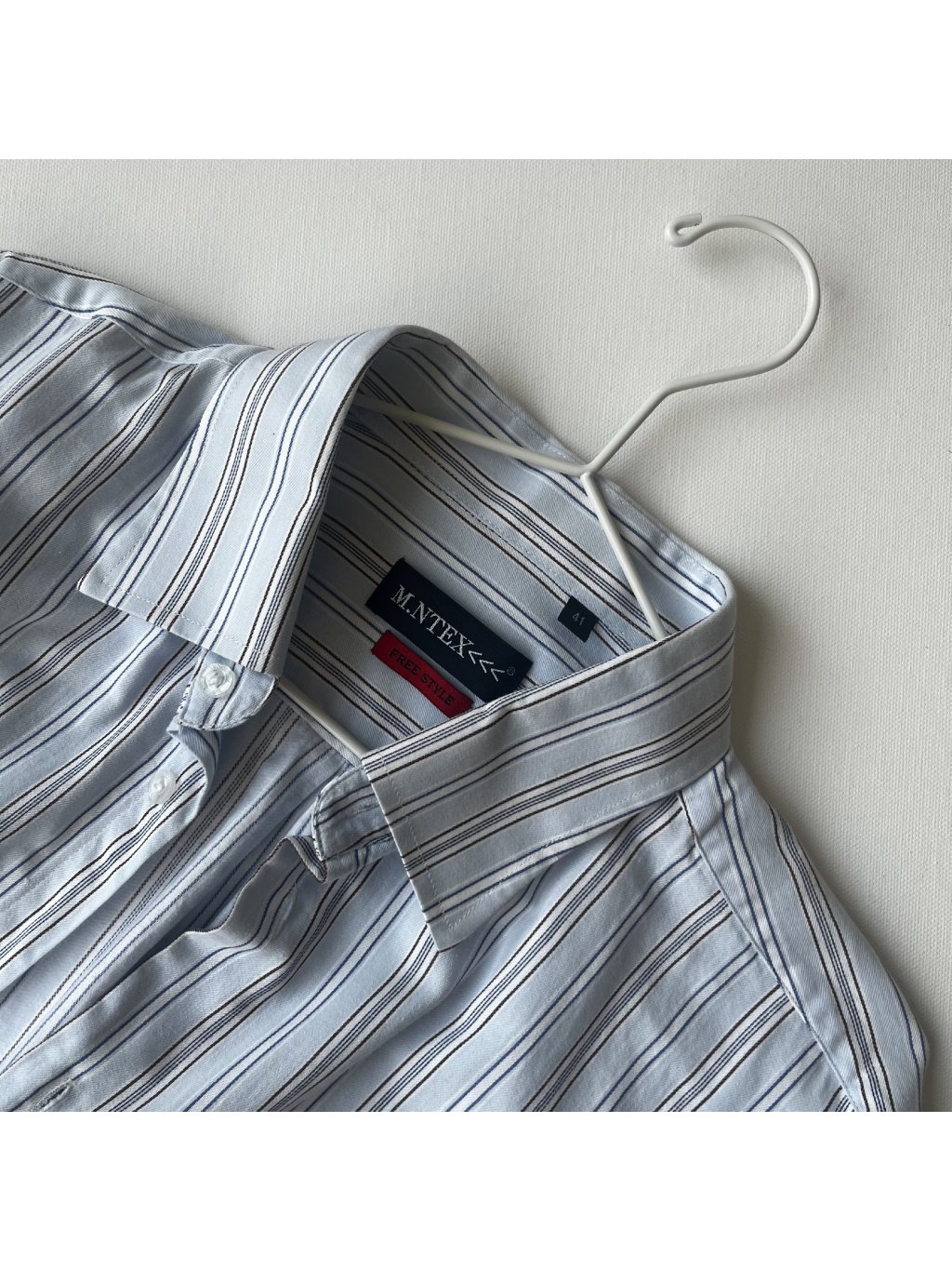 Bledomodrá pruhovaná bavlnená košeľa. Veľmi príjemná štruktúra, pripomínajúca jemný tenký flanel. Ako nová